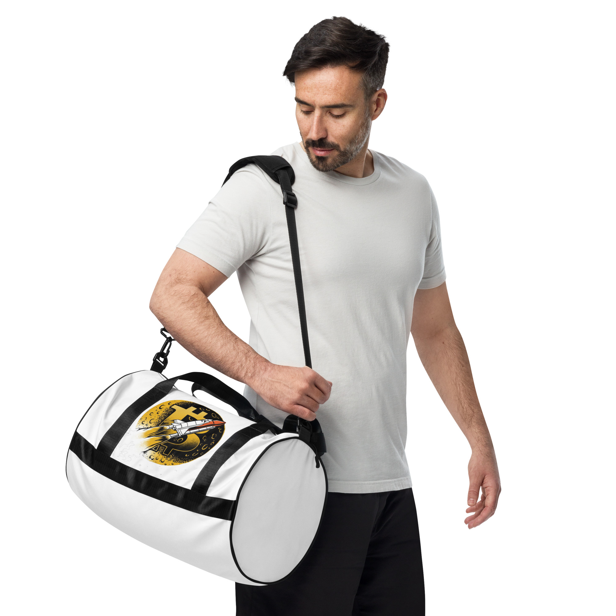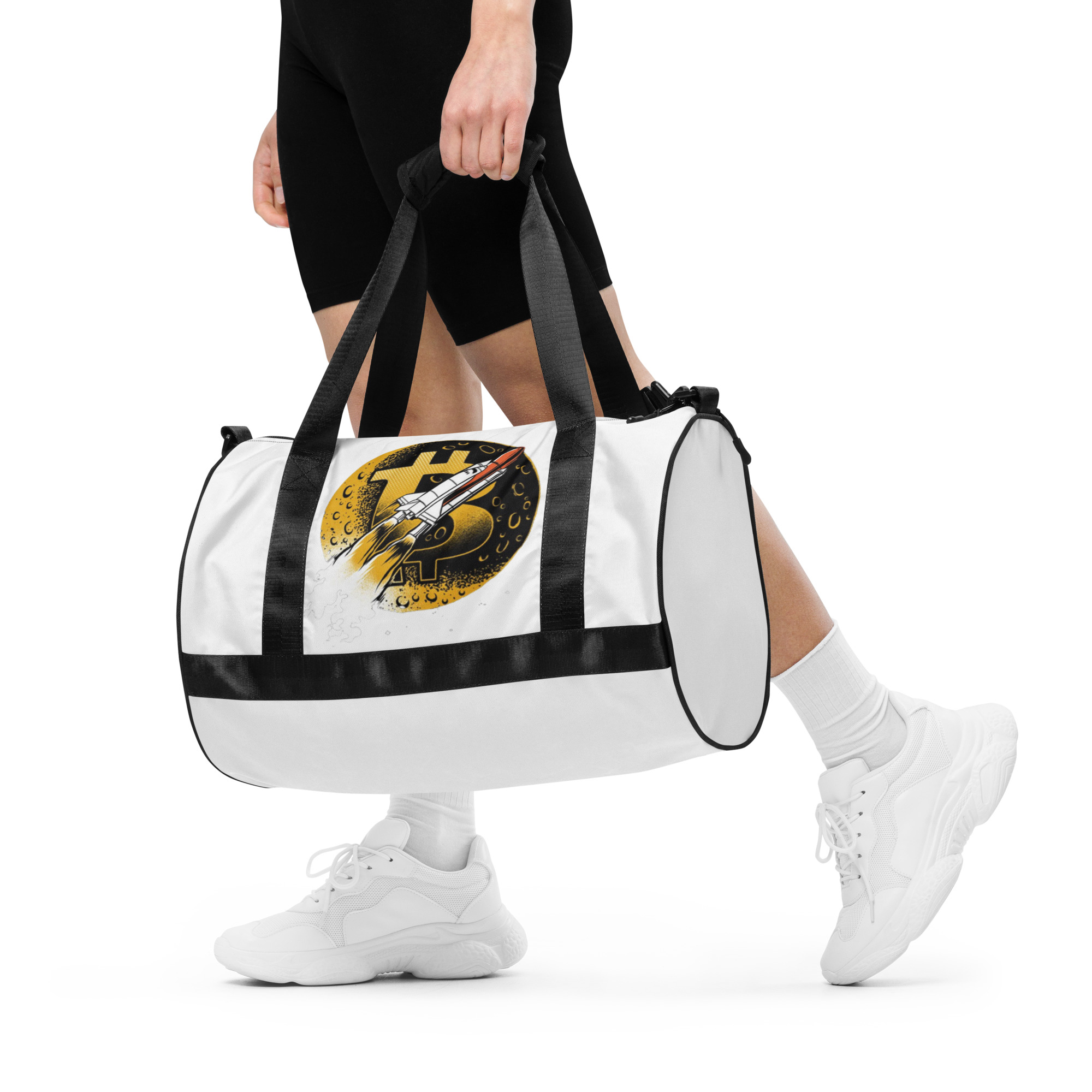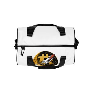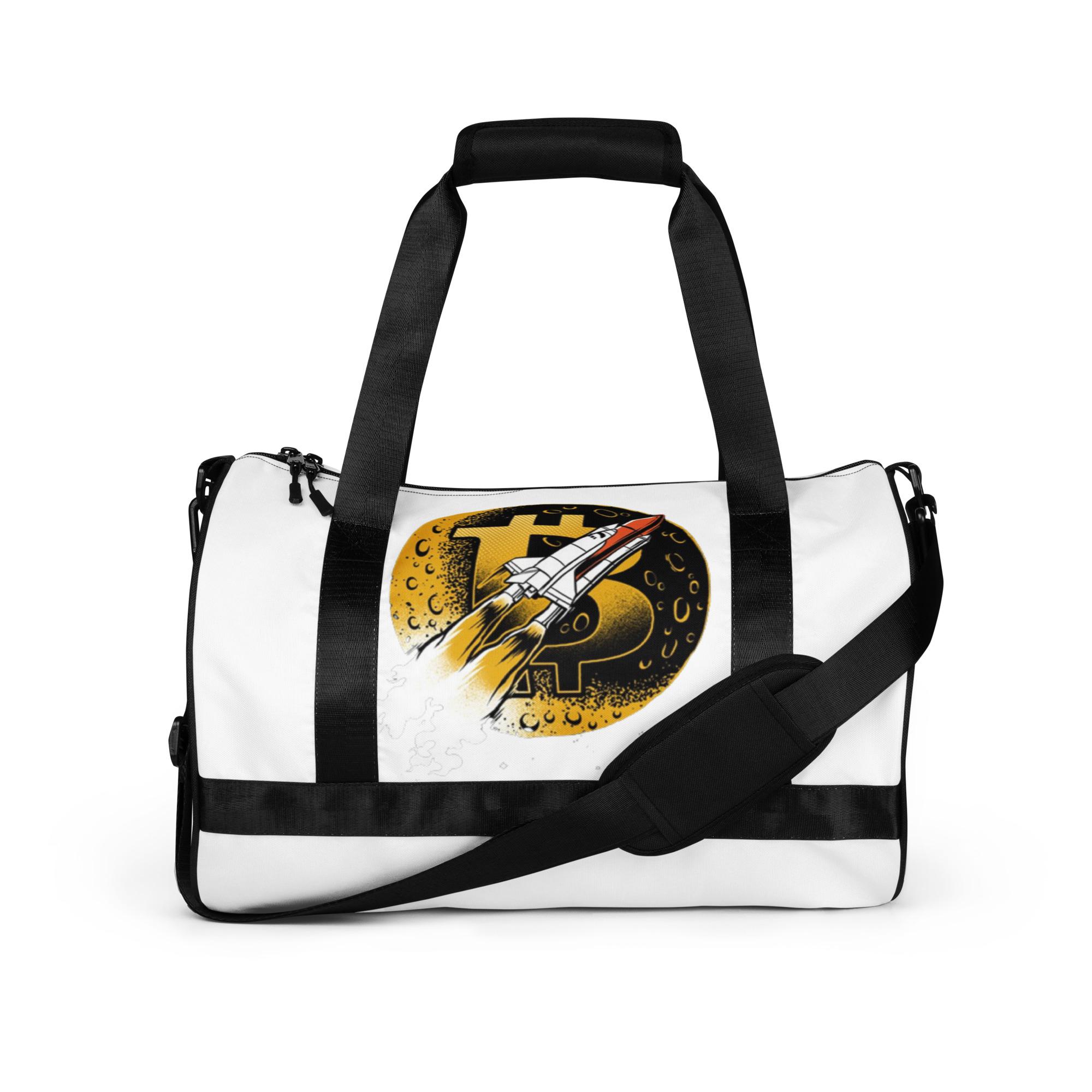 Ready to get your fitness on? Add some punch to pumping iron with this all-over print gym bag. Made from 100% polyester and sturdy, water-resistant fabric, this bag is fun meets function. And it’s got pockets!
