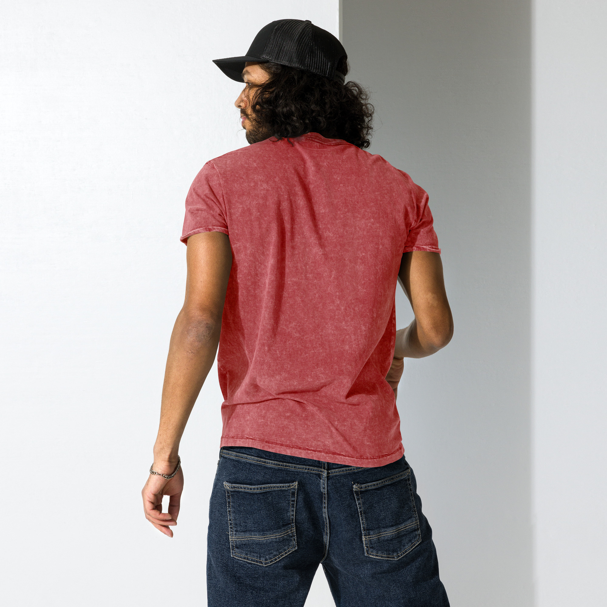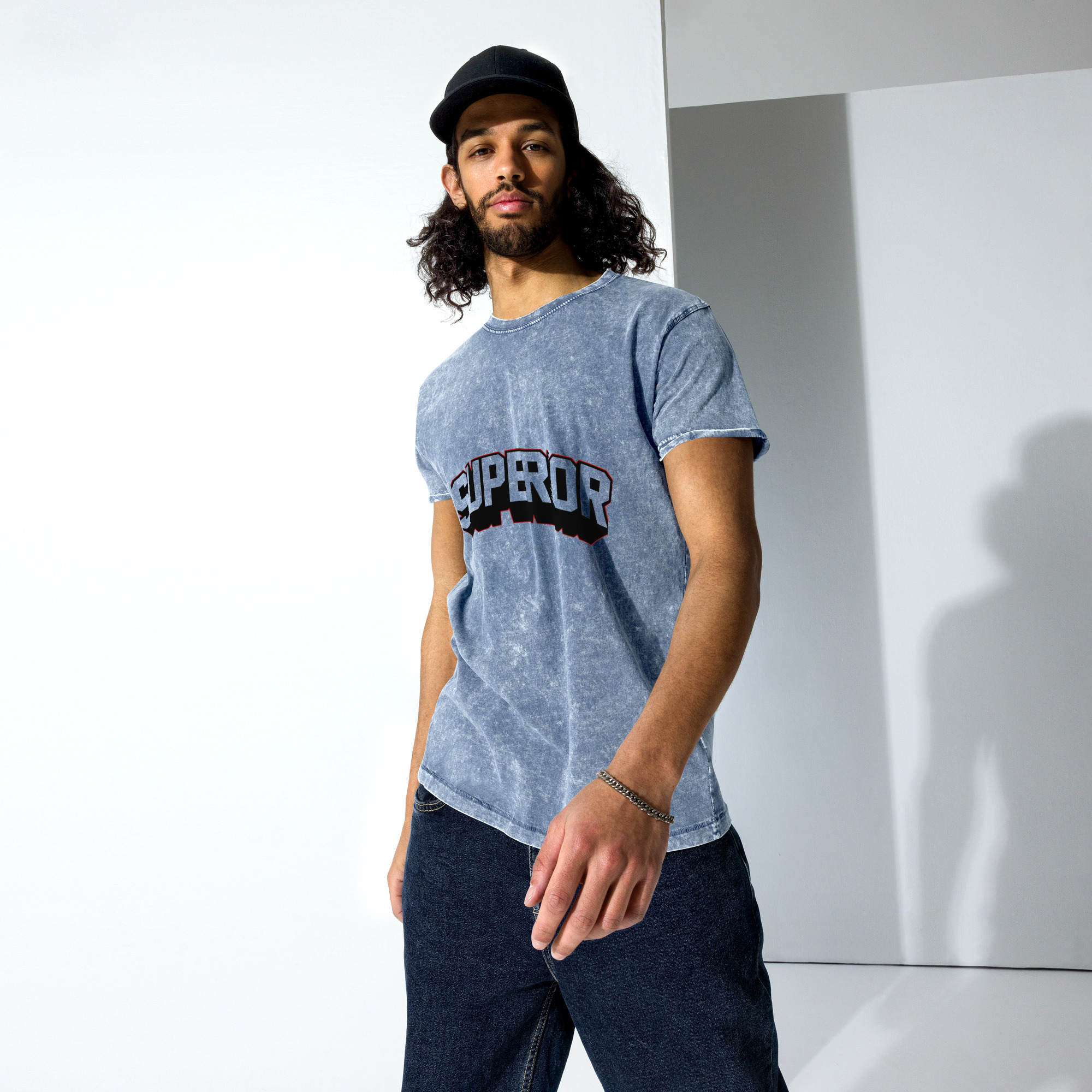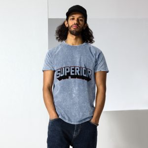 This denim t-shirt is made out of 100% combed cotton and has a classic rounded neckline with ribbed sleeve cuffs. It’s soft, comfortable, and a must-have for every fashion enthusiast!